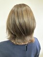 肩レングスのやや外はねスタイルです。白髪染めとブレンドで透明感のある暗すぎない柔らかい感じに仕上げてます。