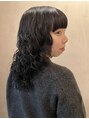 顔まわりレイヤーのウルフパーマスタイル。毛先からしっかりとかかったカールが動くたびに違った表情を見せてくれます◎【京都美容室/河原町/四条/三条/パーマ/ミディアムレイヤー/ウルフパーマ/レイヤーカット/レイヤーパーマ】