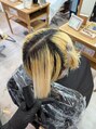 ハイトーンブロンドスタイル襟足は刈り上げギリギリの短く。もみあげはもたつかないようにしっかり短めにしてメガネかけても邪魔にならないようにしました!