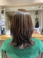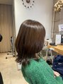 髪の毛の痛みを最小限に抑えるケアカラーで、外ハネでもまとまりのあるツヤツヤヘアー。