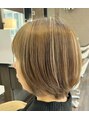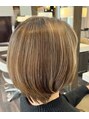 丸みのあるショートボブスタイルですラメラメトリートメントで艶々ですリタッチのカラーの周期が少し伸びるようにハイライト入れました そして徐々にリタッチの色も明るくして更に周期が伸びるようにしていく予定です