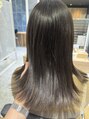 落ち着いても透明感の出るマロンベージュと柔らかく自然に見える中性ストレートをかけています!