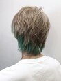 ミルクティー×エメラルドグリーン☆ショートウルフの襟足部分にインナーカラー☆ウルフスタイルにもインナーカラー人気です☆【TELA HAIR つくば研究学園】