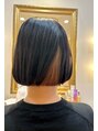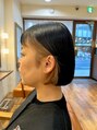 襟足ギリギリでカットしてコンパクトなボブヘア。こめかみ~後ろまでしっかりめのインナーを入れて透明感のある、やりすぎないナチュラルなベージュカラーに。色落ちも緩やかに感じるカラーなので褪色のストレスも少ないです♪