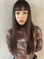 前髪はブラントでぱっつんなスタイルでトレンド感のあるワイドなデザインに☆オリーブカラーで柔かさを出し、透明感あふれるカラーに♪ ニュアンスカラー ヴェールカラー 大人ガーリー オリーブカラー ワイドバング 艶カラー 20代 30代