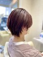 前髪を後ろに流した時に鼻あたりの高さにし、襟足は少し長めに残したスタイル。頭の形や骨格とシルエットやバランスなどを考慮して作って。カラーはノンブリーチのピンクベージュブラウン。[センターパート/ウルフ/レイヤー/ピンクベージュ/ピンクブラウン]