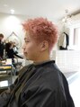 動きのあるショートとブリーチ1~2回で作る薄ピンク系のカラー。色落ちもベージュっぽく落ちます。ドライワックスでスタイリングするのがおすすめです!