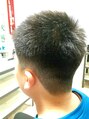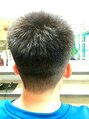 ラグビーボールやってる小6。髪が父譲りの硬くて多いので、ベリーショートで絶壁にならないように…とのオーダー。グリースでウエットに仕上げました。