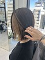 インナーカラー/外ハネ/ベージュカラー/切りっぱなしボブ