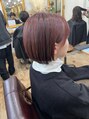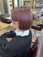 丸みのあるボブを耳にかけたスタイルです!カラーは明るめのピンクでかわいい系に仕上げました!春におすすめのカラーです!