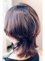 トップに丸みを持たせ、襟足は無造作に。毛先を遊ばせるようにカットしてみました。メリハリを効かせたスタイルになっています!