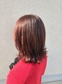 艶と深みのあるレッドブラウン。+トリートメントとmarbb使用で艶サラヘアです!仕上げはヘアアイロンで巻いてオイルセットしてます。