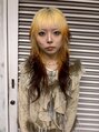 全体をブリーチして根元の方からくすんだ青色を入れて毛先にかけて黒色になるようなデザインカラーです。スマイルとしては顔まわりから後ろの方にかけてしっかりとレイヤーを入れて軽さや動きが出るようにしています。