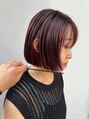 ワインレッドハイトーンボブレイヤーボブブリーチカラー渋谷