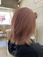 ペールピンクにトップのみ入れたレイヤーがポイントのスタイル♪切りっぱなしにスタイリングで動きつける簡単スタイルです♪変化つけたい方オススメです。
