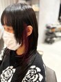 ショートボブでイヤリングカラーにボルドー系の赤を入れています♪