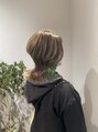 全体に細めハイライトを入れてアクセントにgreenカラーです!カットはハイレイヤー前下がりウルフstyleです♪ケア剤をしっかり付けてブリーチをするので髪のダメージが最小限になるようにハイライトを入れさせていただいております(*^^*)