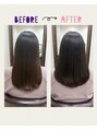 9トーンのアッシュで透明感のある寒色カラーに。黄色味がおさまり、派手すぎず軽やかな雰囲気が出ます。5cmカットした重めのセミロングでまとまり感もUP!一緒に髪質改善エステで栄養補給と薬剤除去もしました。