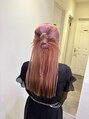 ピンクカラー×カチモリスタイル♪ハイトーンとヘアセットの相性抜群です!ちょっとしたお出かけや特別な日にもオススメなスタイルです。