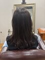 全体にローレイヤーを入れたこなれミディアムロングスタイル。レイヤーに合わせて毛先をワンカール巻くことでゆるっとした柔らかい質感に。カラーは地毛に近いダークブラウンで、オイルのスタイリング剤を毛先に少量馴染ませるだけで落ち着いた大人の艶髪に。