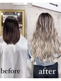 シールエクステ80枚ビフォー&アフターカラーをしないでシールエクステでバレイヤージュスタイル。地毛がパッツンの切りっぱなしや毛量の多い方は馴染ませカットをおすすめします。
