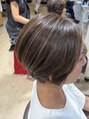 細めのハイライトを根元から入れた白髪ぼかしハイライト全体的に明るくも見えますので全体ブリーチはちょっとという方にもおすすめです。