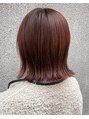 おしゃれなオレンジベージュのぱっつんボブ/ホットペッパービューティー