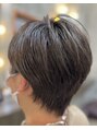 白髪をぼかしながら立体感をプラスしたハイライトショート。ナチュラルで上品な仕上がりなので、仕事もプライベートもおしゃれに楽しめます。
