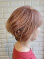 グラデーションボブ。襟足はタイトにスッキリさせ、トップにボリュームを出す。サイドは小顔見せに最適な長さ。明るいピンク系イノアカラーとハイライト、イヤリングカラーの組み合わせ。前処理にメタルDX 、後処理にケラスターゼカクテルトリートメント。
