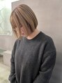ブリーチ2回のハイトーン ボブスタイルです。根元はルーツカラーで暗めのベージュで顔まわりにローライトも入れて立体感を出しています。