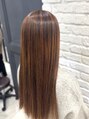 表面に筋状に明るめのカラーを入れることで軽やかで柔らかい雰囲気に仕上がり、全体に動きが出て抜け感や透明感のある仕上りに◎