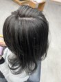 根本付近からハイライトを入れて、全体は白髪をカバーしながら寒色系のグレージュに♪ハイライト部分にも強めに色を入れてコントラストをつけるというよりも色味をはっきりと出すような仕上がり。