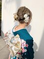 ロングヘアーでまとめています。表面のみ巻いて、あとは引き出しながらバランスを見てふわふわに。ヘアカラーと飾りの色味を合わせると統一感出て、より可愛さが際立ちます★顔周りと前髪は軽く巻いて、マスカラタイプのワックスで固めています。