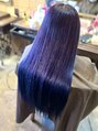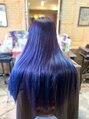 ラベンダーとネイビーブルーのグラデーションカラーです。トリートメントでツヤツヤに整えて、ストレートスタイルが綺麗☆☆巻いた時には2色が混ざり合うのでとても可愛いです!