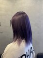 ブリーチしている髪をリタッチしてイルミナでオンカラーしましたイルミナカラーに変更はプラス\1500です!濃いめの紫に染めさせていただきました!