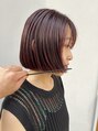 ワインレッドハイトーンボブレイヤーボブブリーチカラー渋谷
