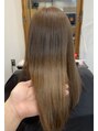 こんにちは、ユウナです^ - ^ブリーチなし、かなりオレンジが強いベースから、中明度のグレージュに!髪質改善も一緒にしているので艶がある仕上がりになっています!