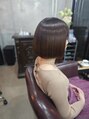 グレージュのヘアカラー。少し暗めの設定ですが透明感があり重く見えない柔らかい仕上がりになります。カットはシンプルなボブですが内巻きにおさまりやすいようにボリュームと毛先の厚みを調整しています。
