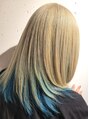全体ブリーチした後にイルミナカラーのベージュ系に、インナーでシアンブルーを入れました。