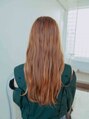 このスタイルは表面に軽くレイヤーを入れて毛先を軽くし、動きが出るようにしてあります。顔まわりにもレイヤーを入れることによって結んだ時にも小顔効果になるのでおすすめです。カラーは明るめのオレンジカラーで柔らかく明るい雰囲気を出しています。