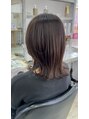 お顔周りの軽やかさと毛先のワンカールが可愛いミディアムスタイルです。フェイスレイヤーでバランスよくシルエットが整います。巻いても巻かなくてもナチュラルに仕上がります。