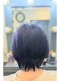 くびれウルフショートショート。カラーはブリーチ2回→ディープシアメジスト 濃く入れているので室内では暗髪。日光や照明に当たるときれいな紫色が映えます。