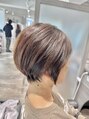 大人かわいい前下がりのショートボブはシャープに切ったライン、襟足をしめてスッキリ見せたりと、メリハリを効かせて絶妙なバランスに!ハイトーンカラーはシークレットハイライトで束感、質感をプラスしてくすみカラーのアッシュベージュを!