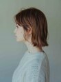 顎下あたりの切りっぱなしボブを外ハネにすることで動きを出します。伸ばし途中ではねやすい方や、内巻きのボブに飽きた方におすすめのスタイルです。バングは外に流しもみあげ、おくれ毛を出して大人っぽいこなれた印象に。