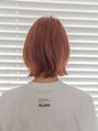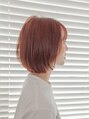 顎下ラインでカットしたボブスタイル。レイヤーを入れて丸みが出るように、内巻きにすると丸く、外はねするとくびれるカットに。カラーはレッドブラウンで柔らかさとツヤ感のあるカラーに。ベースも明るいので透明感がでます。