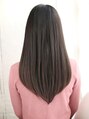 おろし流しの前髪にさらっと落ちる様に伸びるストレートスタイルです。ツヤ感のあるスタイルは上品で人気です。