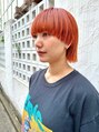 顔周りをマッシュラインで切り込み、バックはボブスタイル!耳前と後ろのデザインを変えてマッシュウルフのようなスタイルにも◎色はビビットなオレンジカラー!