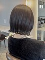 ぷつっとしたラインの切りっぱなしボブです。オイルをつけただけで束感が出るようにこだわりの毛量調整をしています。