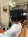 顎ラインの切りっぱなしボブスタイルです。ハイライトカラーが表面に少し残っていて、可愛く仕上がりました。スッキリして頭も小さくスタイルアップ!【立川/白髪ぼかし/インナーカラー/リタッチ/ハイライト/縮毛矯正/ブリーチ/カット】
