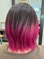 耳上はチョコレートブラウン、耳下はピンクレッドのデザインカラーです。ボブにレイヤーを入れて軽やかに